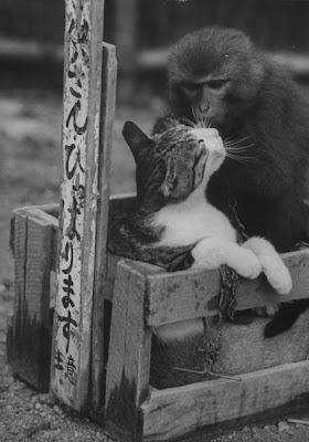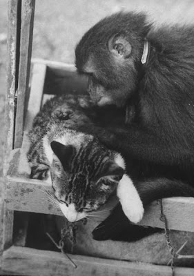 Các bạn có nghĩ rằng khỉ và mèo là 2 loài hợp nhau không? Thế mà chúng nó vẫn có thể thân nhau, quan tâm, yêu thương nhau. Người ta đã chụp được rất nhiều ảnh về mối quan hệ đáng yêu này:
